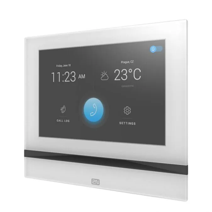 Dominantou odpovídací jednotky 2N® Indoor View je 7″ širokoúhlý dotykový displej. Povrch z tvrzeného skla a stylový design se skvěle hodí do luxusních rezidenčních projektů. K instalaci potřebujete jen jeden UTP kabel a instalační krabici. Náš vlastní operační systém vám zaručuje spolehlivost jednotky a snadnou konfiguraci.