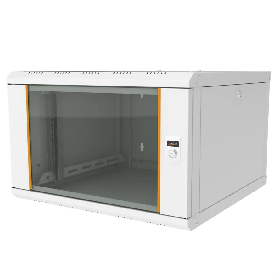 Nástěnné 19“ rozvaděče AGER řady Agena Base slouží pro malé nebo středně velké síťové instalace. Pro maximalizaci nosnosti až 80kg a pevnosti rozvaděče jsou hlavní profily kostry přinýtovány k hornímu a spodnímu rámu ocelové konstrukce rozvaděče. Montážní lišty lze podél hloubky rozvaděče nastavit dle vašich potřeb. Nástěnná konstrukce zvyšuje funkčnost a nabízí řadu řešení v malých prostorách. Kromě odolné konstrukce dotváří kovový rám a skleněné přední dveře elegantní a estetický vzhled.
