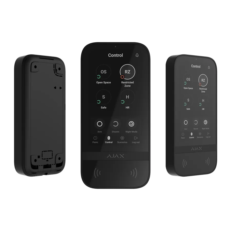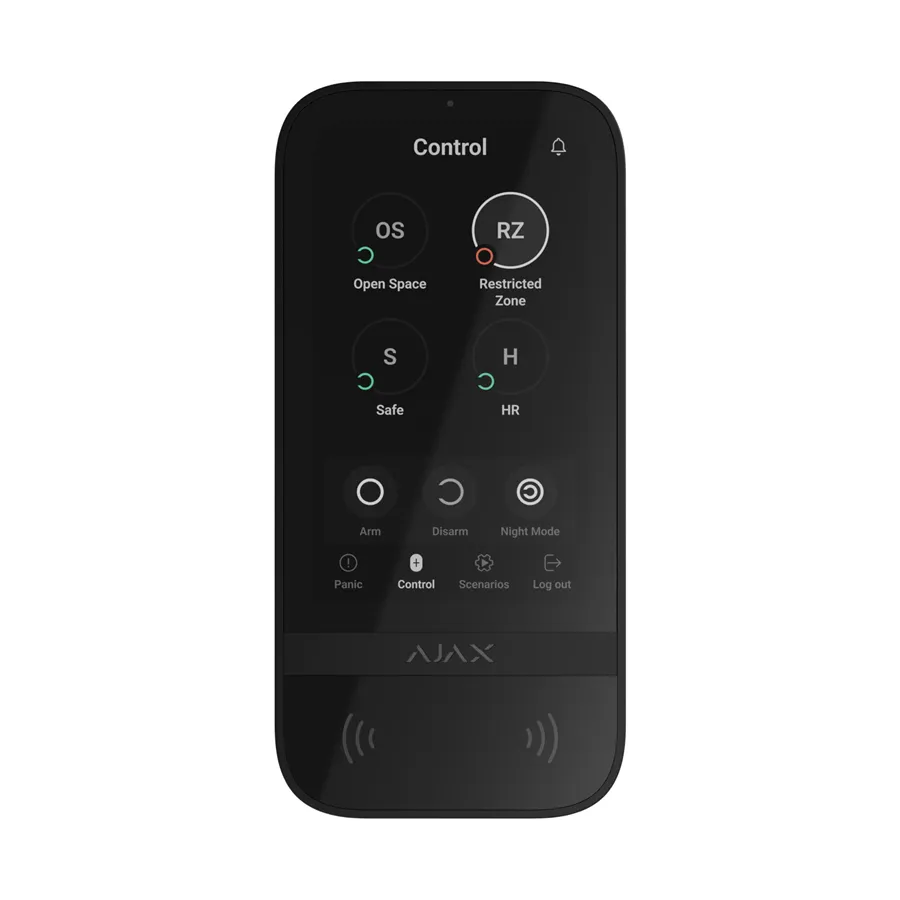 Bezdrátová dotyková klávesnice KeyPad TouchScreen nabízí snadné a intuitivní ovládání, vychází totiž z uživatelského prostředí mobilní aplikace Ajax. Obrazovka o velikosti 5 palců umožňuje rychlý přístup k aktuálnímu zabezpečovacímu režimu libovolné skupiny. Displej se aktivuje pohybem ruky a disponuje automatickou regulací jasu.