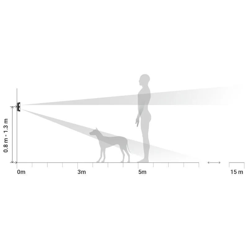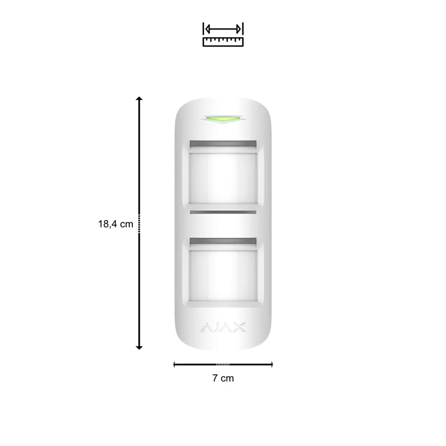 MotionProtect Outdoor je bezdrátový detektor pohybu s dvojicí PIR senzorů. Detekční vzdálenost je v rozpětí 3–15 metrů. Díky chytré analýze signálů přístroj spolehlivě detekuje narušení ve střeženém prostoru a zároveň ignoruje pohyb domácích zvířat, rostlin a dalších příčin falešných poplachů. Zařízení je určeno pro venkovní provoz a je napájeno ze dvou předinstalovaných baterií CR123A s výdrží až 5 let.