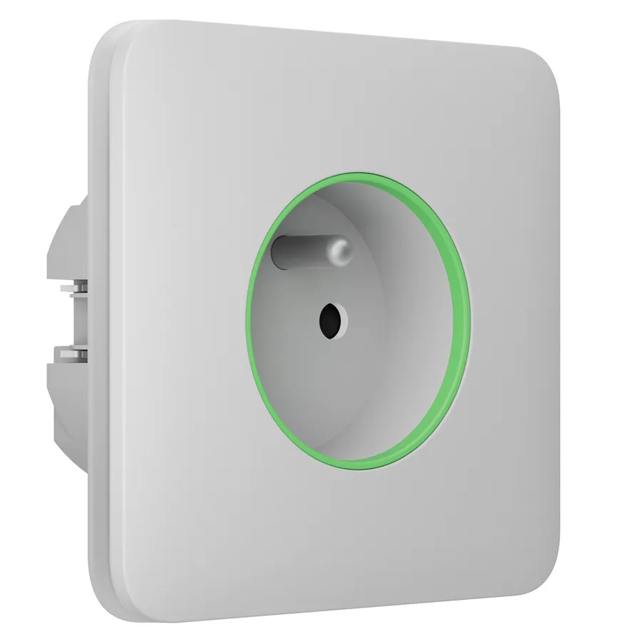 Outlet [typ E] Jeweller je chytrá zásuvka s monitorováním spotřeby elektrické energie. Zařízení se ovládá pomocí aplikací Ajax. Schopnosti Outletu se nejlépe projeví ve scénářích automatizace. Systém například dokáže automaticky zapnout zásuvky podle plánu nebo vypnout všechny zásuvky při aktivaci zabezpečení nebo v případě požárního poplachu. Zásuvky lze použít s chytrými spínači LightSwitch.