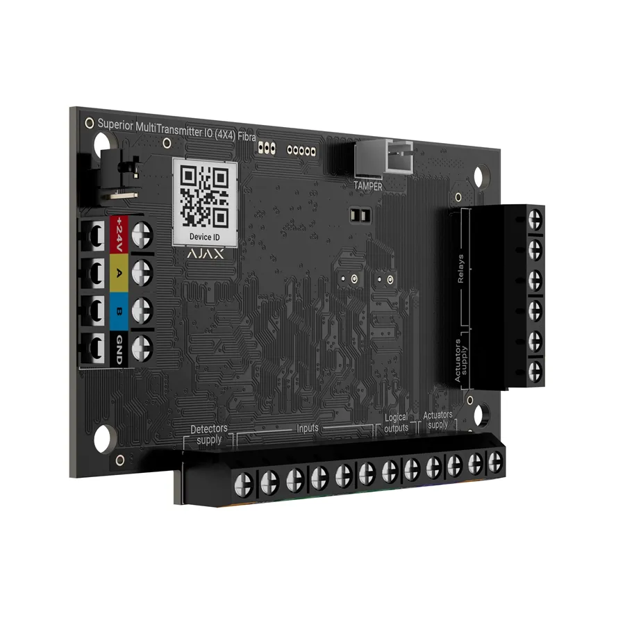 MultiTransmitter IO (4x4) Fibra umožní propojit téměř jakékoli drátové bezpečnostní zařízení s chytrým ekosystémem Ajax. Snadno tak integrujete i starší nebo jiné než Ajax produkty a proměníte je v součást moderního zabezpečení – ideální pro projekty libovolné složitosti.