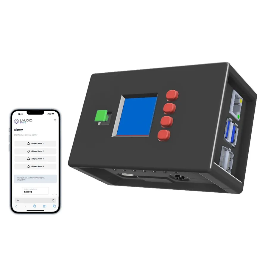 Laudio Bell-E je systém, který lze nainstalovat během jednoho dne. Jeho univerzálnost z něj dělá ideální volbu nejen pro školy, ale také pro firmy, haly, sklady či kanceláře. Zařízení je vybaveno stereo audio výstupem, WiFi i Ethernet konektivitou a LCD displejem se čtyřmi programovatelnými tlačítky pro okamžité spouštění oznámení. Díky nízkým nákladům a jednoduché obsluze je Bell-E jedním z nejvýhodnějších řešení na trhu pro ty, kteří chtějí propojit moderní technologie s pohodlím a efektivitou provozu.