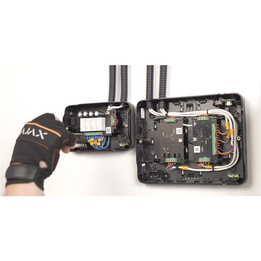 Pouzdro pro bezpečné kabelové připojení zařízení Ajax. Pouzdro vybírejte podle velikosti a počtu instalačních slotů.