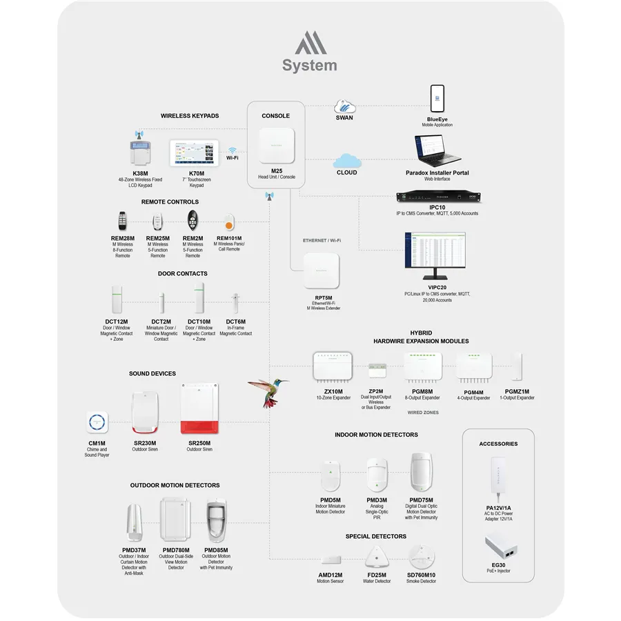 | Instalace | Registrovaným instalačním technikem s Paradox Service Company ID (PCI) z BlueEye nebo Service Company Portal |