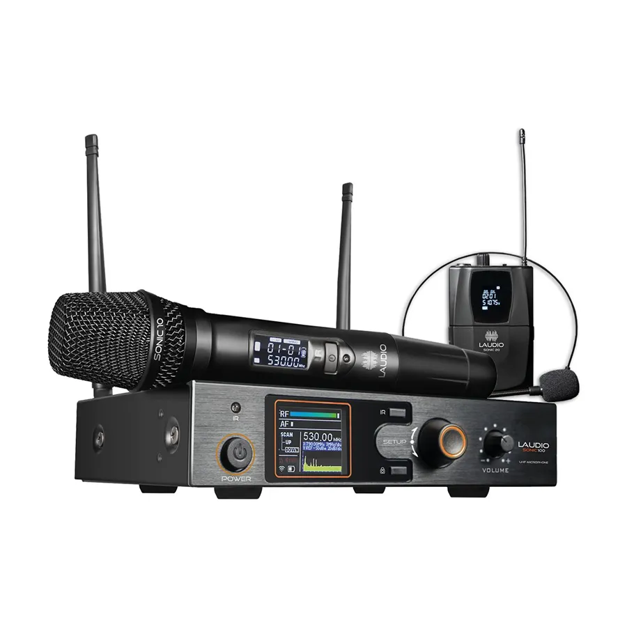 Laudio Sonic je univerzální systém jak svým provedením, tak množstvím dostupných variant. K dispozici jsou verze s jedním nebo dvěma ručními mikrofony, s jedním či dvěma náhlavními mikrofony a také kombinace 1 ručního + 1 náhlavního mikrofonu.