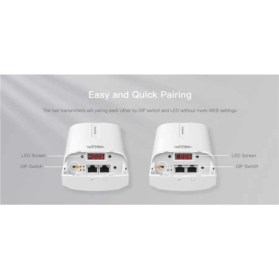 Wi-Tek WI-CPE111-KIT V3 je kompletní bezdrátový přenosový kit určený pro stabilní a dlouhodobé venkovní připojení. Poskytuje rychlost až 300 Mbps v pásmu 2,4 GHz a dosah až 2 km, což z něj dělá ideální řešení pro přenos obrazu z bezpečnostních kamer, propojení budov, farmy, sklady nebo odlehlé objekty bez nutnosti kabeláže.