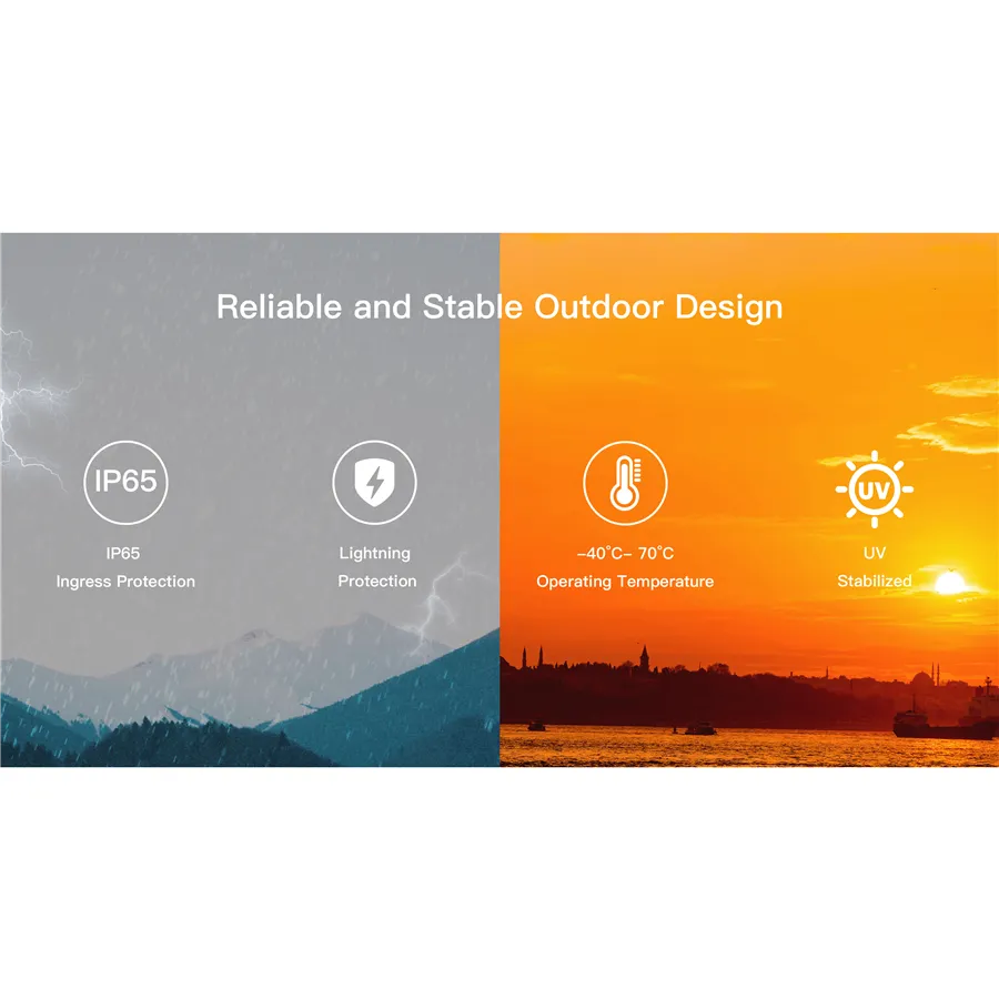 - Odolnost: IP65, 2kV Lightning Protection