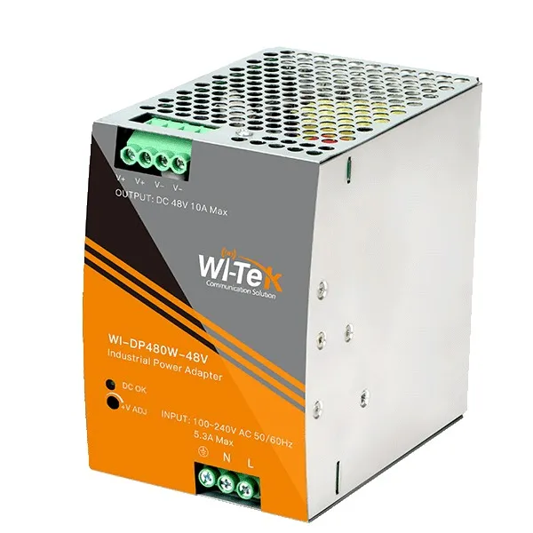 Wi-Tek WI-DP480W-48V - Napájecí adaptér na DIN lištu - AC input 100-240V 5.3A max, DC output 48V 10A 480W